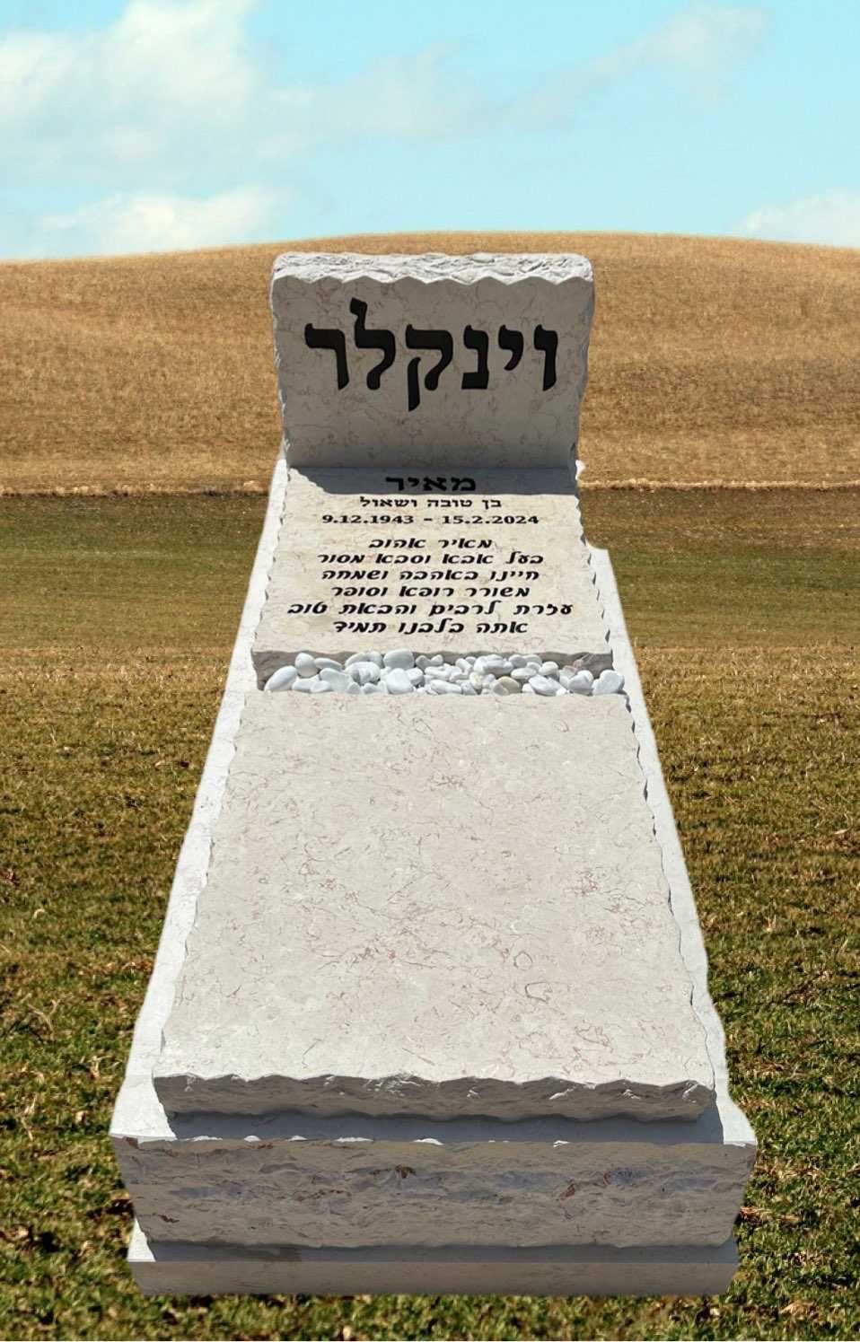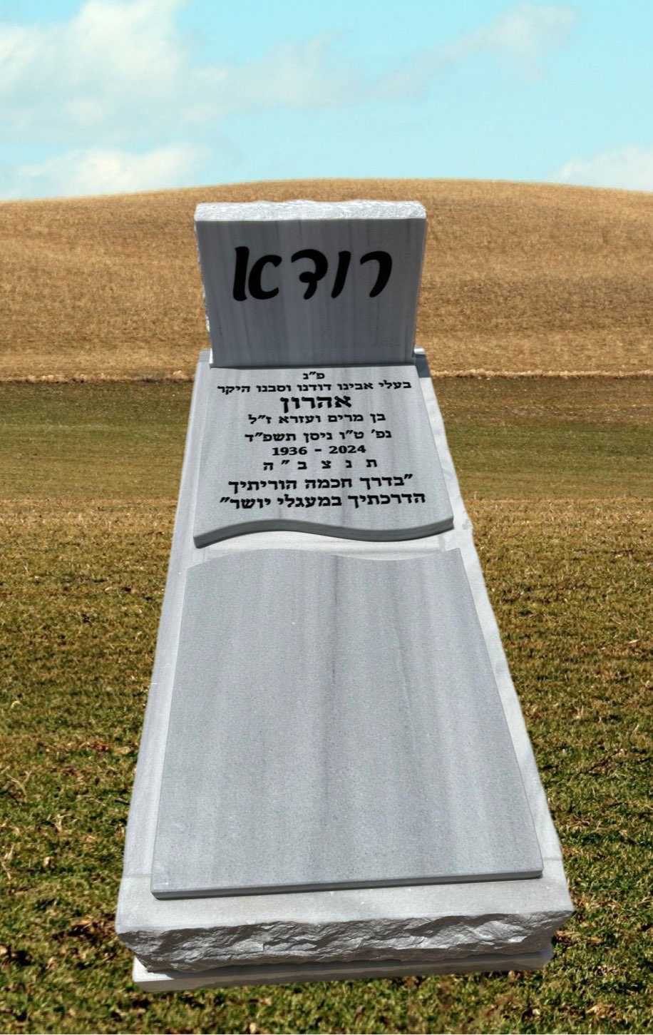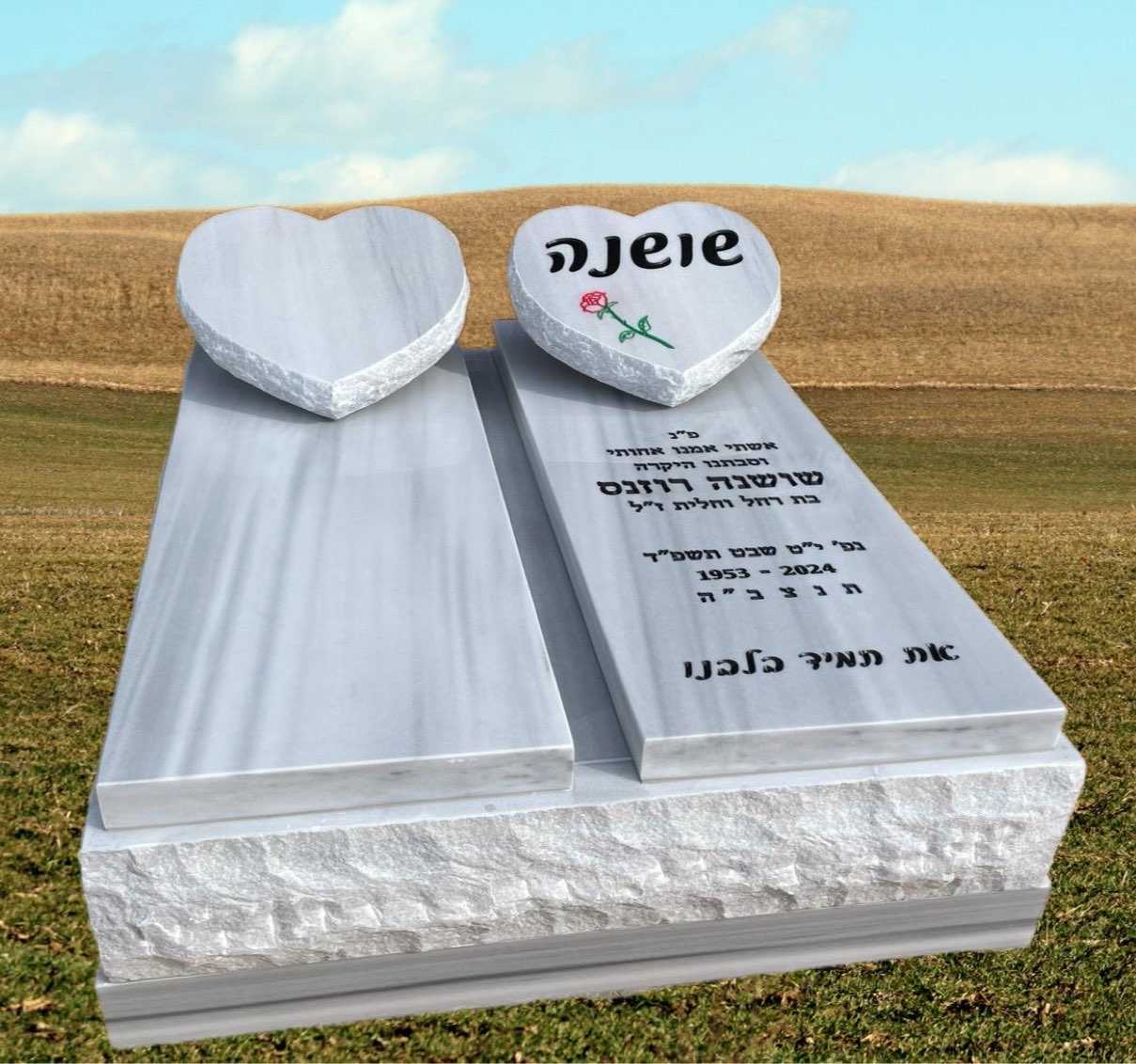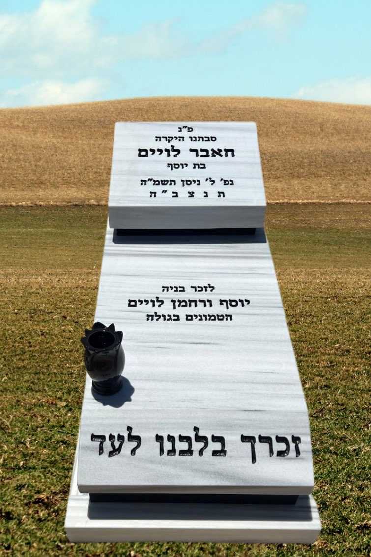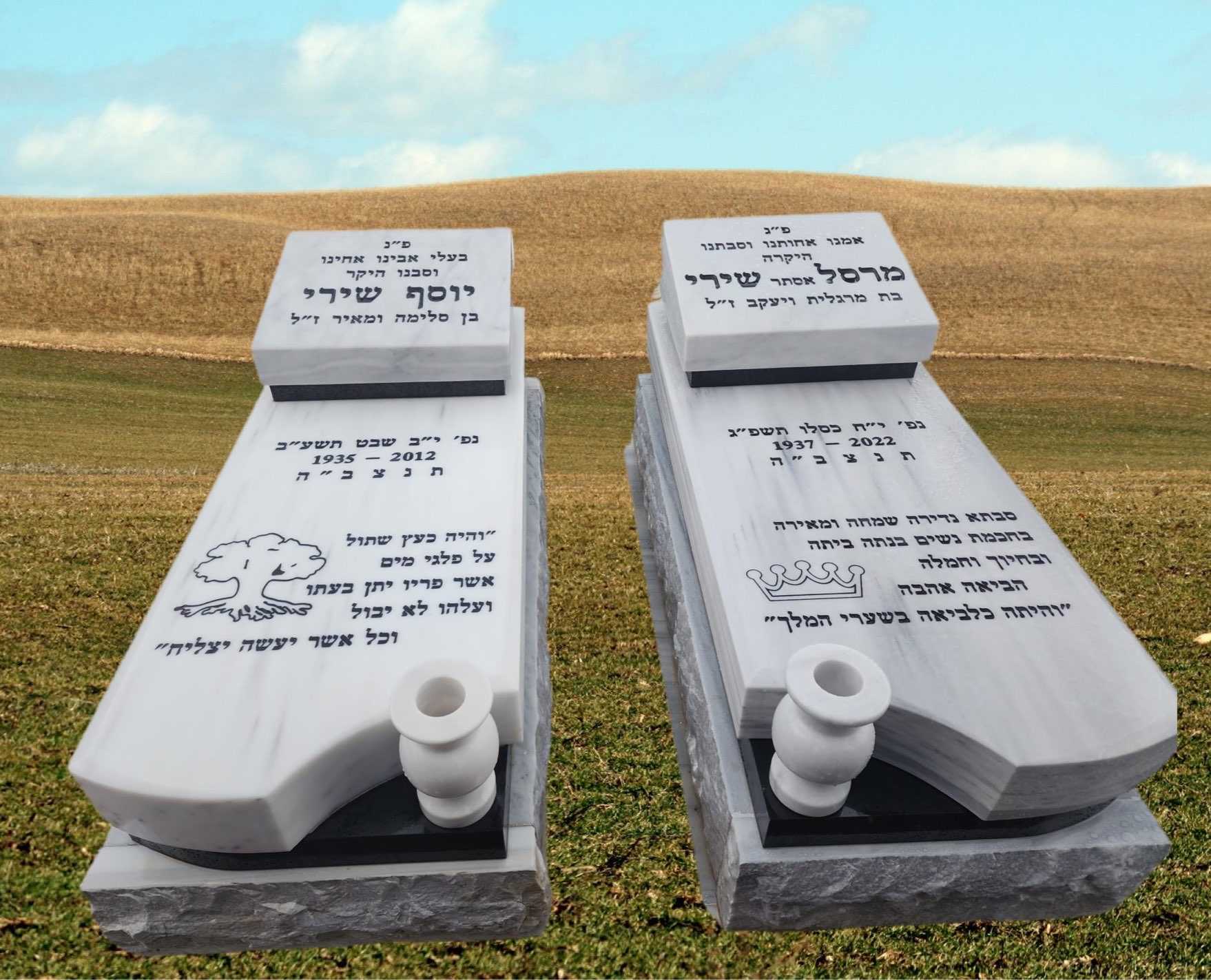 מצבות אתר מצבות ישראל מציג מגוון רחב של מצבות איכות מצבות גרניט לעמוד מצבות גרניט >> מצבות שיש טורקי לעמוד מצבות שיש טורקי >> מצבות אבן חברון לעמוד מצבות אבן חברון >> מצבות משולבות לעמוד מצבות משולבות >> מצבות מיוחדות לעמוד מצבות מיוחדות >> מצבות סנהדרין לעמוד מצבות סנהדרין – קיר >> מצבות התזה הפוכה לעמוד מצבות בהתזה הפוכה >> מצבות שיש טורקי משפחתיות לעמוד מצבות שיש טורקי משפחתיות >> מצבות אבן חברון משפחתיות לעמוד מצבות אבן חברון משפחתיות >> מצבות זוגיות לעמוד מצבות זוגיות – כפולות >> ניווט מהיר